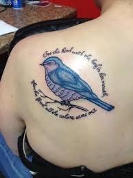 Wanting A Blue Bird Or Two Tattooed In Memory Of My Grammy This Is Great Inspiration Bluebird Tattoo Bird Shoulder Tattoos Colorful Bird Tattoos