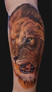 Aggressive Lion Tattoo On Calf Aggressive Lion Tattoo For Men Lowe Tattoo Design Brullender Lowe Tattoo Tiertattoos
