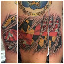 3d Skin Rip Maryland Flag Tattoo By Shady Smith Flag Tattoo Maryland Tattoo Tattoos