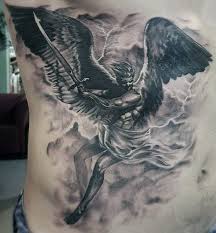 Guys Torso Flying Guardian Angel With Sword Tattoo Angel Tattoo Men Guardian Angel Tattoo Guardian Angel Tattoo Designs