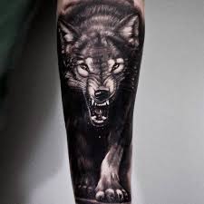 50 Realistic Wolf Tattoo Designs For Men Canine Ink Ideas Wolf Tattoo Design Tattoo Designs Men Wolf Tattoo Forearm