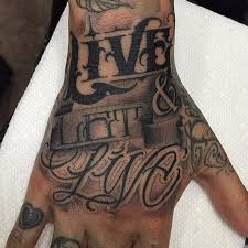 Big Meas Tattoo Lettering Hand And Finger Tattoos Hand Tattoos