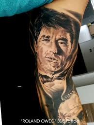 Tony Montana Scarface Tattoo Portrait Black And Gra Style Inner Bicep By Roland Owec In 2020 Portrait Portrait Tattoo Tony Montana