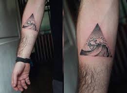 Wave And Mountain In A Triangle Tattooed On The Right Forearm Triangle Tattoos Small Forearm Tattoos Waves Tattoo