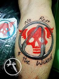 Borderlands Tattoo I Got For My Cousin That Passed Away By David Presley Wasted Youth Tattoos Romeoville Il Borderlands Tattoo Gaming Tattoo Japanese Tattoo