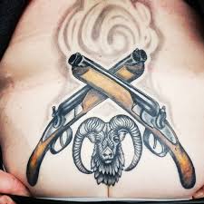 Sawed Off Double Barrel Shotguns Along With Her Zodiac Sign On Her Lower Back That Smoke Tho Zodiacsigns Zodi Aries Tattoo Red Tattoos Life Tattoos