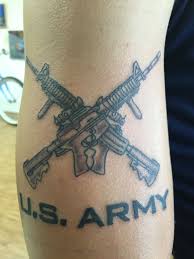 Us Army Crossed Rifles And Script Tattoo By Orlando Socarras Tattoo Script Army Tattoos Tattoos
