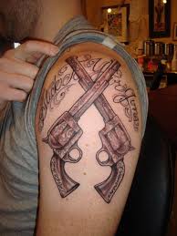 Cool Guns Tattoo On Shoulder For Men Cool Man Tattoos Name Tattoos On Wrist Tattoo Sleeve Men Mens Shoulder Tattoo