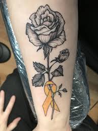 My New Childhood Cancer Awareness Tattoo Ribbon Gold Rose Cancer Ribbon Tattoos Cancer Awareness Tattoo Rose Tattoos For Women