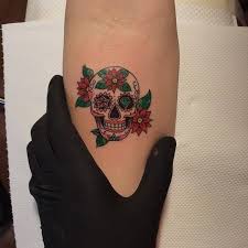Illustrative Sugar Skull Tattoo On The Right Inner Forearm Mexican Skull Tattoos Skull Tattoos Small Skull Tattoo