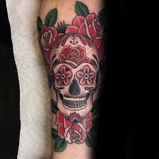 Mexican Sugar Skull Tattoo For Guys On Inner Forearm Mexican Skull Tattoos Candy Skull Tattoo Sugar Skull Tattoos