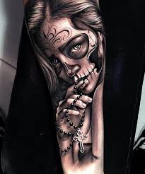 Day Of The Dead With Rosary Tattoos Mexican Tattoo Hand Tattoos