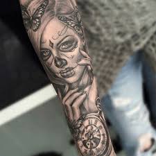 Roses Sugarskull Dayofthedead Girls With Sleeve Tattoos Skull Girl Tattoo Sleeve Tattoos For Women