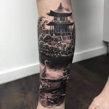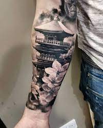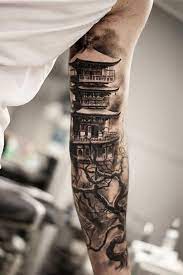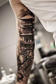 Unique And Aesthetic Tattoo Ideas For Men S Arm With Symbolic And Artistic Elements Tatuagem De Templo Japones Tatuagens Orientais Masculinas Tatuagem Templo