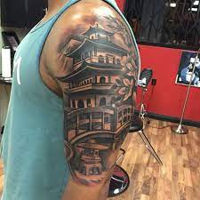 Pagoda Sleeve Tatuagem Templo Tatuagem De Templo Japones Samurais Tatuagem