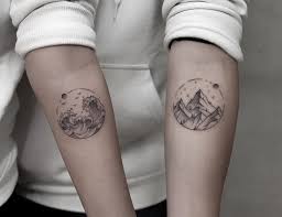 Matching Circular Scenes By Aki Wong Tattooed On Both Forearms Mountain Tattoo Tattoos Waves Tattoo