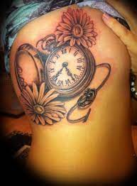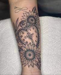 Clock Pocket Watch Sunflower Flower Color Black And Grey Antique Vintage Real Realistic Best 3d Tattoos For Kids Watch Tattoo Design Sunflower Tattoo Shoulder