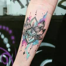 Watercolor Lotus Mandala Forearm Arm Sleeve Tattoo Ideas For Women Www Mybodiart Com Watercolortattooideas Flower Wrist Tattoos Wrist Tattoos Girls Tattoos