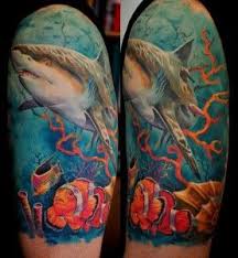 Imagen De Art Body Modification And Colorful Shark Tattoos Ocean Tattoos Ocean Sleeve Tattoos