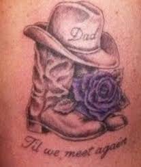 Memorial Tattoo With Cowboy Boots Hat Tattoos Cowgirl Tattoos Inspirational Tattoos