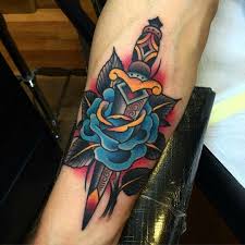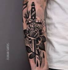 Dagger Rose Tattoo On Lower Arm Tattoobite Com Tattoos For Guys Rose And Dagger Tattoo Cool Arm Tattoos