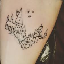 Ink Pedia Glad To Finally Welcome Tattoo 3 An Outline Of Hogwarts Castle Done By Aaron At Ohana Tatt Hogwarts Tattoo Bookish Tattoos Harry Potter Tattoos