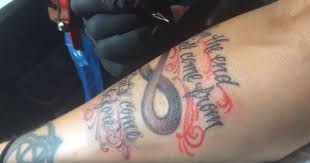 Dave Grohl Getting Right Arm Tattoo With Infinity Symbol In The End We All Come From What S Come Before Dave Grohl Tattoo Tattoos Arm Tattoo