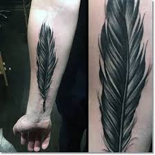 Solid Black Feather Tattoo On The Right Inner Arm Feather Tattoo For Men Feather Tattoo Feather Tattoos