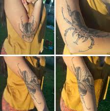 A Beetle Tattoo Spreads Its Wings In Tandem With Its Owner S Arm Colossal Beetle Tattoo Elbow Tattoos Bug Tattoo