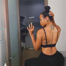 Samaria Leah S Instagram Post Fun Fact My Spine Didn T Hurt At All It Was Lowkey Soothing Girl Back Tattoos Girl Spine Tattoos Black Girls With Tattoos