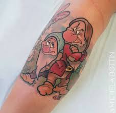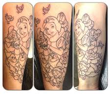 Outline Tattoo Of Snow White And The Seven Dwarfs On A Forearm By Ally Riley Dangerzonetattoo Melbourne Australia Snow White Tattoos Tattoos Disney Tattoos
