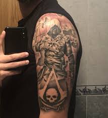 60 Assassins Creed Tattoo Designs Fur Manner Videospiel Tinten Ideen Mann Stil Tattoo Assassins Creed Tattoo Tattoo Designs Men Tattoos For Guys
