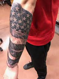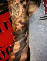 American Flag And Fireman Sleeve Tattoo Inkstylemag Fireman Tattoo Ems Tattoos Flag Tattoo