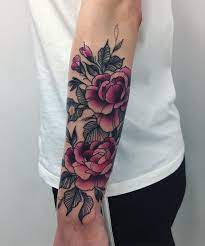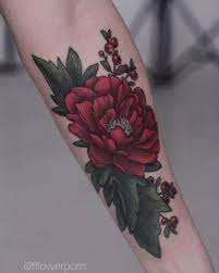 Deep Color Floral Tattoo On Forearm Vintage Flower Tattoo Vintage Tattoo Peonies Tattoo