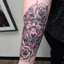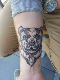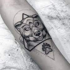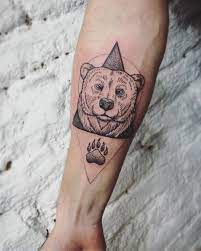 Amazing Lined And Geometric Bear Tattoo On The Forearm Geometric Bear Tattoo Bear Tattoo Bear Tattoo Designs