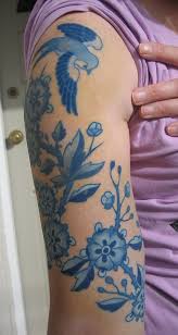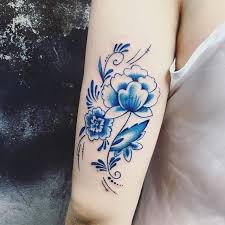 12 Exquisite Delft Blue Tattoos Blue Tattoo Blue Ink Tattoos Blue Flower Tattoos