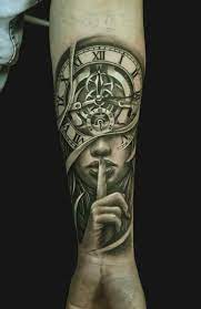 Clock And Girl Face Tattoo For Forearms Cool Arm Tattoos Clock Tattoo Tattoos For Guys