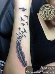 Feather Tattoo Feather Tattoo Design With Flying Birds Birds Tattoo Birds Tattoo Design With Feather Bird Tattoo Design On Side Wrist Feather Tattoo Design
