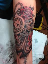 Color Flowers Anchor And Watch Tattoo Anchor Sleeve Tattoo Anchor Tattoos Watch Tattoos