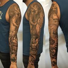 My Sleeve Tattoo Completed St Christopher And St Michael St Michael Tattoo Sleeve Tattoos St Christopher Tattoo