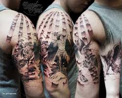 Amazing Man Left Half Sleeve Fallen Angel Tattoo Design Trending Tattoo Ideas Fallen Angel Tattoo Angel Tattoo Tattoos For Guys
