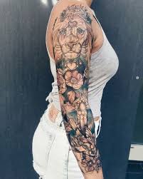 20 Vibrant Sleeve Tattoos For Women The King Of The Jungle Is Without A Doubt The High Girls With Sleeve Tattoos Best Sleeve Tattoos Unique Tattoos For Women