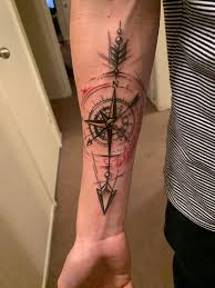 Compass And Arrow Done By Jared Rocker At Clovis Ink Clovis Ca Sagittarius Tattoo Designs Compass Tattoos Arm Cool Forearm Tattoos
