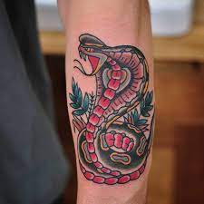Cobra Snake Tattoo By Mark Lording People Have Been Getting Forearm Tattoos Like This For Over 100 Hun Traditional Snake Tattoo Cobra Tattoo Traditional Tattoo