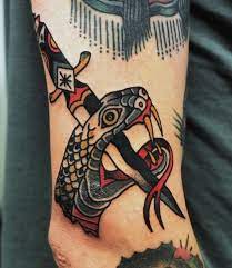 70 Traditional Snake Tattoo Designs For Men Slick Ink Ideas Traditional Snake Tattoo Snake Tattoo Design Snake Tattoo