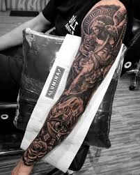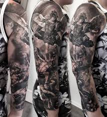 Full Sleeve Saint Michael Tattoo Sleeve Tattoos Holy Tattoos Full Sleeve Tattoos