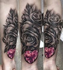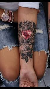 Pink Crystal Heart Forearm Tattoo Ideas For Women Black Floral Flower Rose Inner Wrist Ar Forearm Tattoo Women Sleeve Tattoos For Women Wrist Tattoo Cover Up