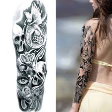 Tribal Roses Skull Black Full Arm Temporary Tattoo Sleeve Body Sticker Halloween Arm Temporary Tattoos Tattoos Temporary Tattoo Sleeves