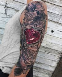 Ruby Heart Roses Sleeve Tattoos For Women Half Sleeve Tattoo Arm Sleeve Tattoos