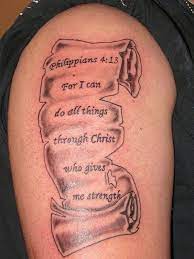 Male With Tattoo Of Philippians 4 13 Bible Verse On Outer Forearm Verse Tattoos Bible Verse Tattoos Tattoo Designs Men